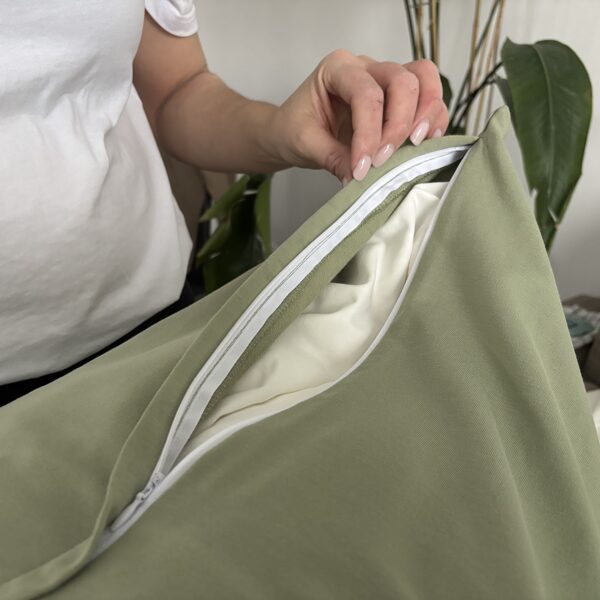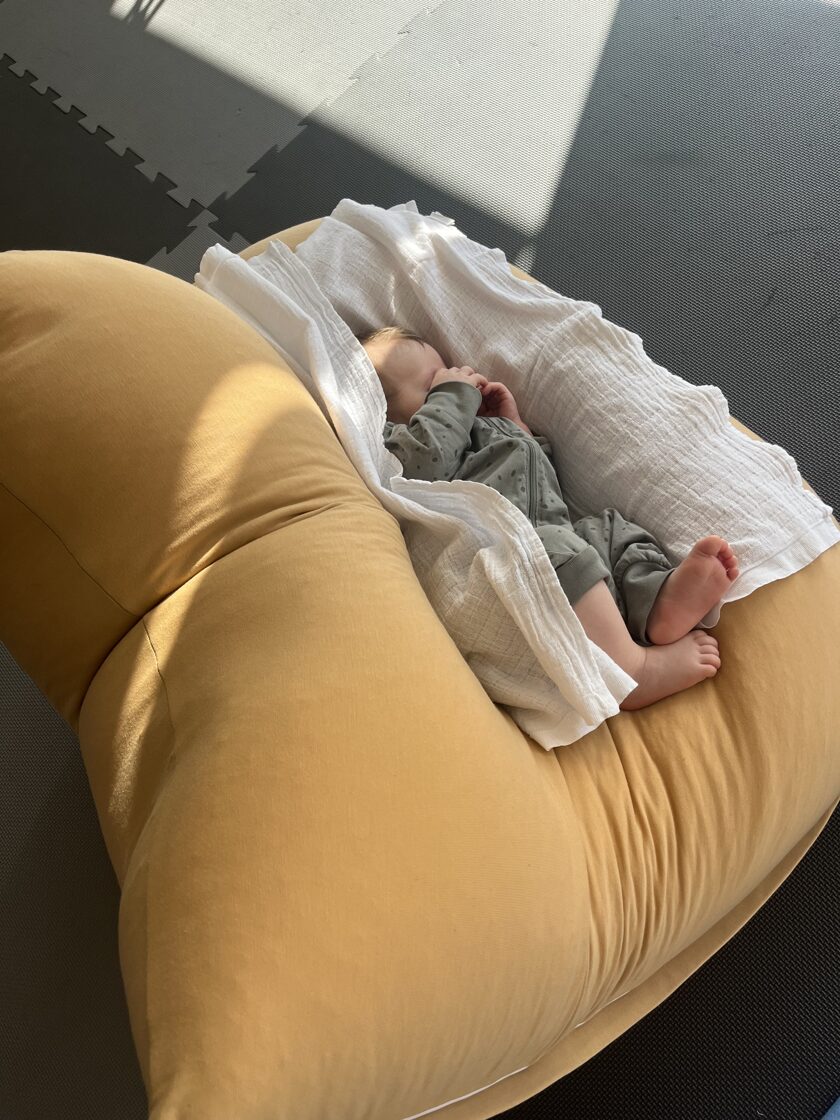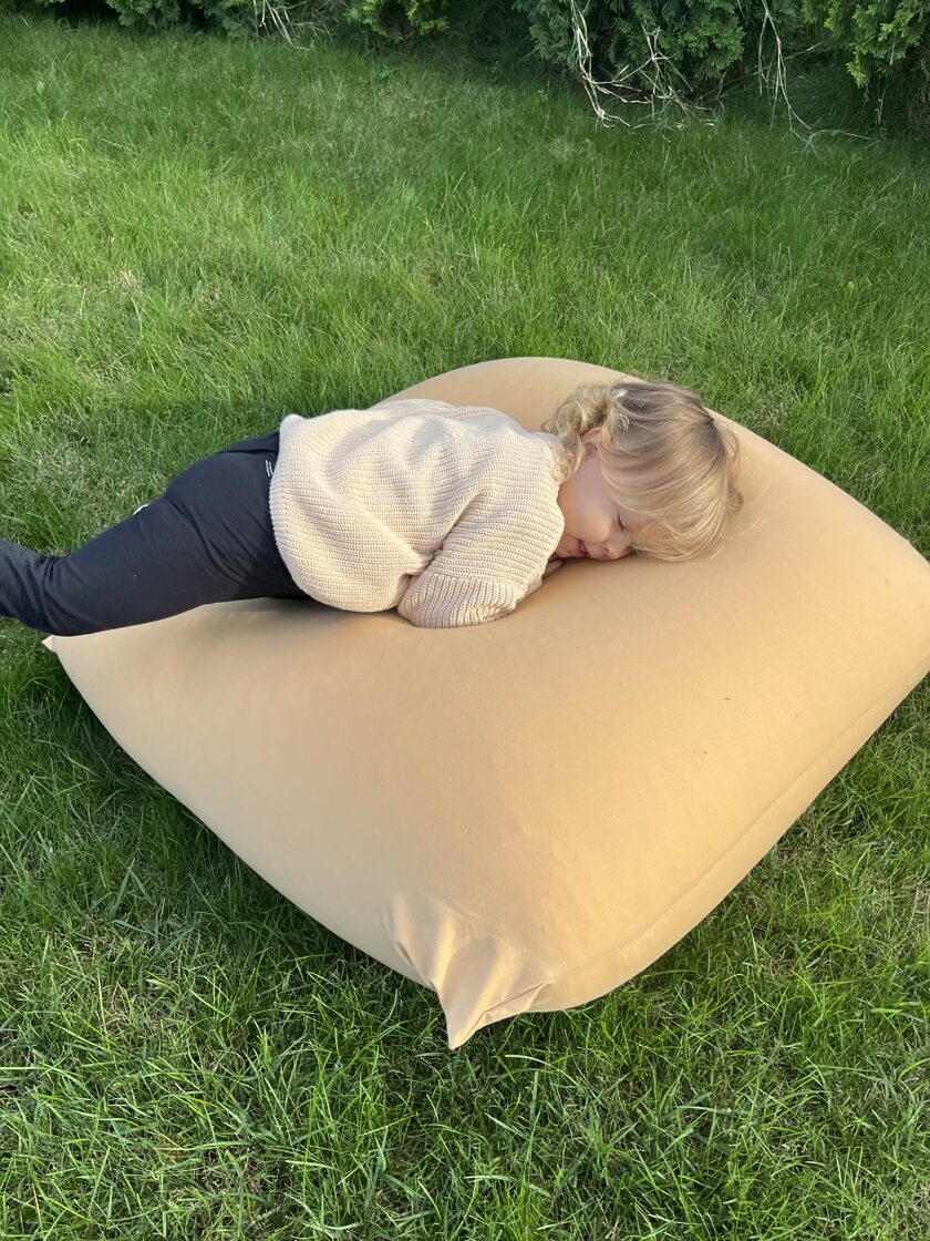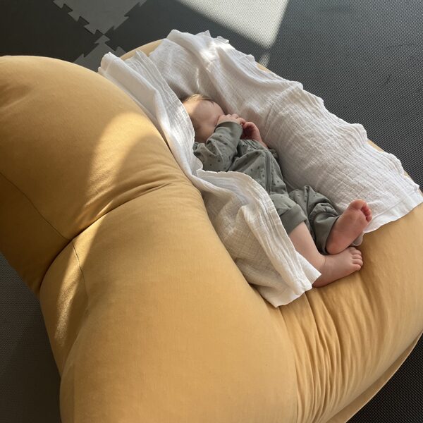 Na bokoch a na chrbte v polohe „embryo“. Puf vytvára mäkkú, no zároveň stabilnú oporu tela.