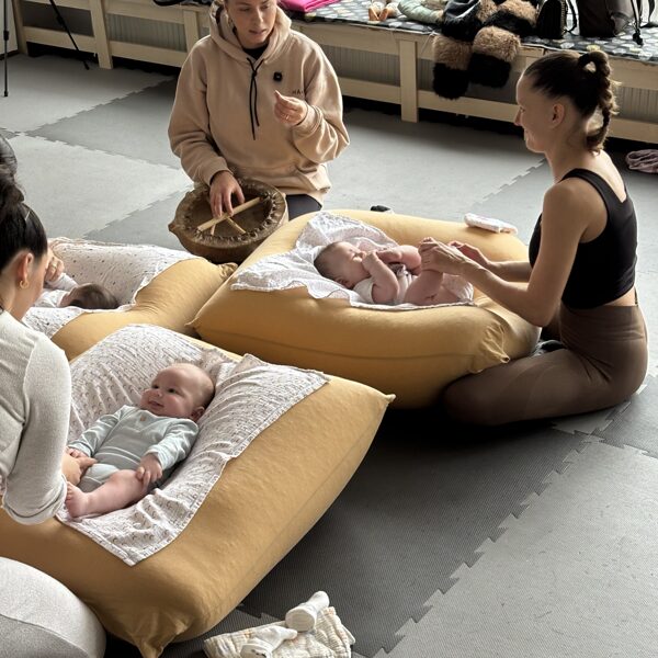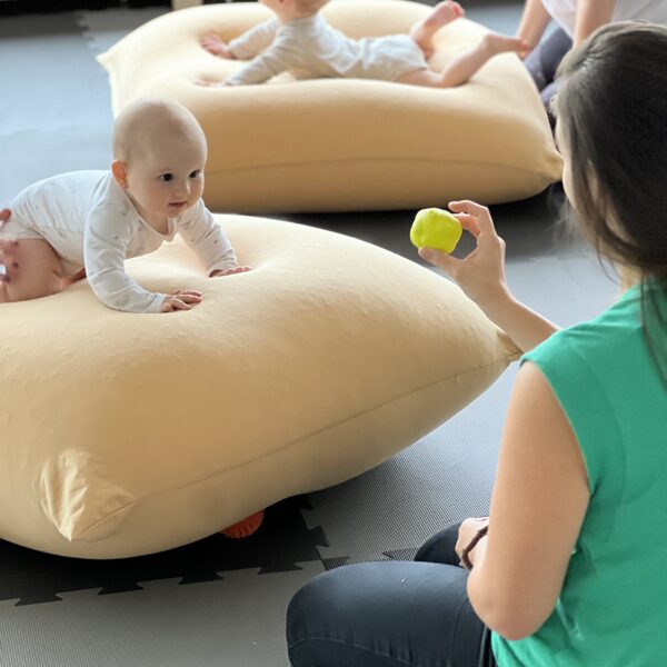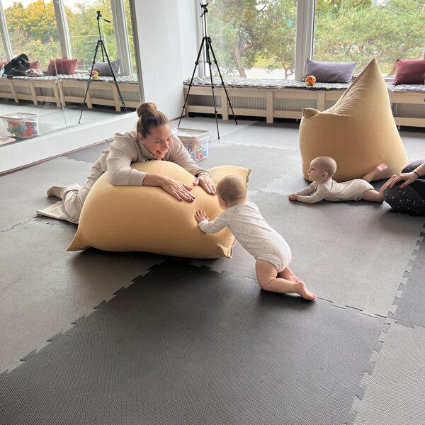 Stimulácia vestibulárneho aparátu.Jemné pohupovanie, vozenie, hojdanie a zmena polohy na pufe prirodzene stimuluje vestibulárny systém.
